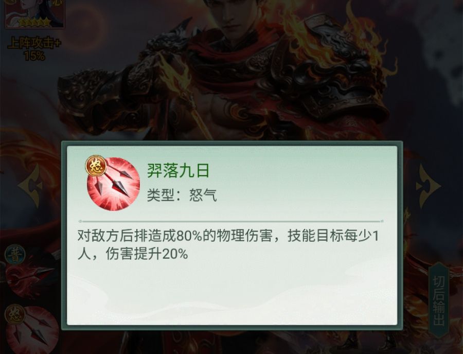 角色养成深度显著影响其实战上限。升至九星时,“羿落九日”将恒定获得20%额外伤害加成;突破至真仙1重后,技能对生命值高于30%的目标额外造成40%伤害,大幅提升对健康状态敌人的压制效率;抵达真仙3重时,机制进一步分化:自身生命高于50%时,怒气技伤害再提升45%;若生命低于50%,则怒气技可转化为治疗效果,按一定比例回复自身血量,兼顾输出与生存韧性。