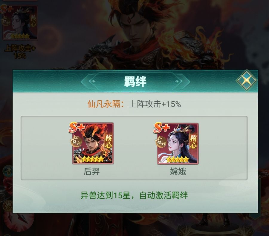 在阵容构建层面,后羿常与齐天大圣共同承担古神体系双核输出职责,二者配合嫦娥激活“古神·月华”羁绊,获得15%攻击加成。前排推荐采用平天大圣、伏羲、九天玄女组合,提供减伤、护盾、伤害分摊及团队回复能力,形成攻守兼备的完整闭环。该体系高度依赖角色星级与培养等级,越后期成长曲线越陡峭,长期培养价值突出。
