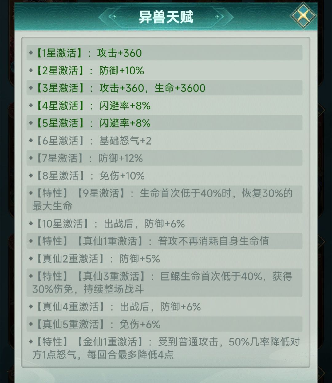 异兽阵容的选择上如果选择合适的异兽,还能触发异兽共鸣,能和巨鲲共鸣的异兽是青龙、玄武、白虎等,这样的话队伍攻击能力更强,要是队伍中在加一个朱雀和腾蛇就是主流的荒兽队,不管是pve还是pvp下都有很好的对战效果。