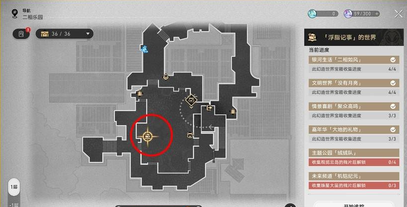 此成就需要完成4.0和4.1地图全部「浮脂记事」,然后来到图示位置,将六个世界的宝箱全部拿到再退出即可达成成就。
