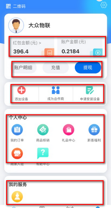 4、点击我的,登录后可查看我的订单/我的服务等功能