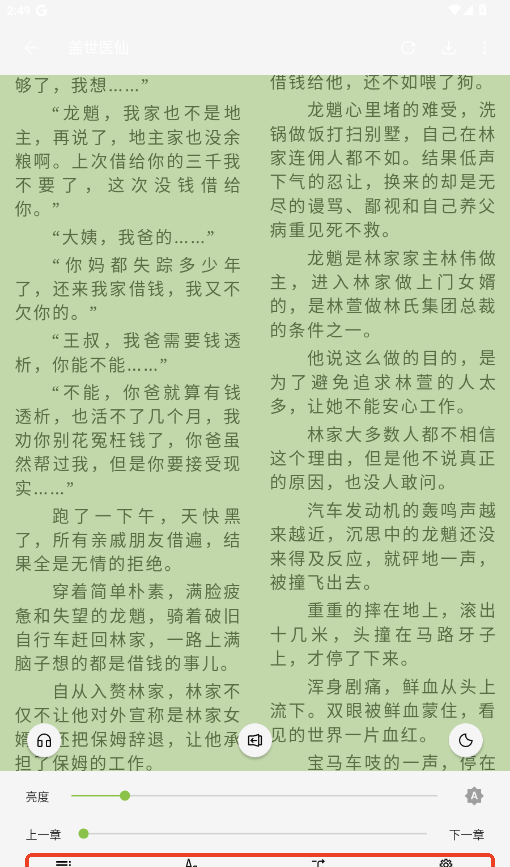 在阅读界面,可以调节字体大小、背景颜色等设置,提供舒适的阅读体验。