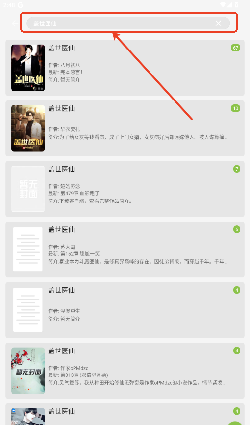 在搜索框中,输入您想阅读的小说名称或作者,快速找到感兴趣的书籍。