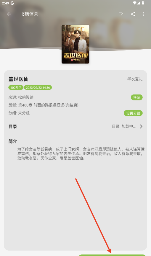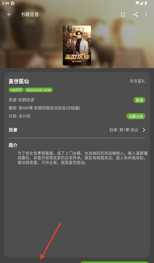 点击选中的小说进入详情页,点击“阅读”按钮开始阅读。您还可以查看章节目录,选择想看的章节。