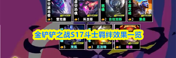 金铲铲之战s17赛季即将上线,斗士羁绊全队获得百分比生命值,斗士棋子越多,生命值加成就会更多,下面是金铲铲之战S17斗士羁绊效果一览,一起来看看吧。