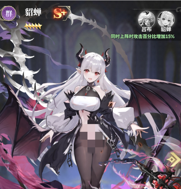 貂蝉的魅惑效果可以使得敌方单位在这一回合内不能动弹,从而大幅度降低敌人的反应速度。她在与吕布对战的时候,使她们俩的结合发挥出了最大的效果,给吕布的输出争取了足够的时机。为了克服队伍中缺少控制力与增益的问题,贾诩作为辅助控制型的角色被加入进来之后,使整个队伍的协同效应得到进一步提高。贾诩给敌方加了乱武、沉默等控制技能,给队友增加了更多的战术选择。貂蝉的控制链配合贾诩的技能可以多方面地打断敌人的节奏,使敌方不能集中火力对己方进行有效的反击。