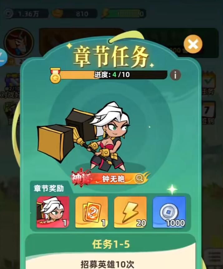 玩家如果想要获得体力、资源等等,最基础的就是直接完成章节任务,这个是新手玩家前期最容易获得的资源,其实每个章节都有10个小任务。难度也不是特别的高,玩家只需要跟着任务指引,一步步地完成就可以,在这样的情况下,就可以把对应的章节任务完全清完,就能够解锁对应的奖励,此时玩家不仅能够获得体力,而且还有铜币,神话英雄,传说角色等等。不得不说,玩家在游戏初期的时候,通常就需要靠这些来凑齐基础阵容。