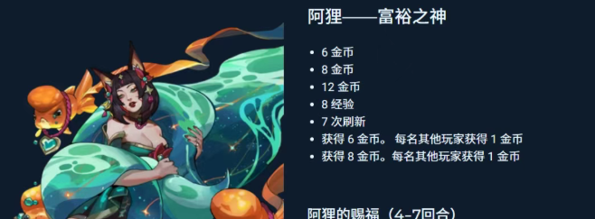 经济型阵容:选择阿狸,可获得金币、经验及免费刷新次数,适合快速升级和追高费卡。