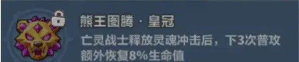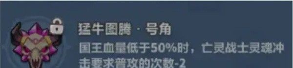 亡灵战士将额外继承部分国王血量,国王剩余生命值越少,亡灵战士将获得越多攻速提升,亡灵战士自然退场时,基于存活期间造成的伤害总额,按自身剩余血量比例转换为1次高伤害的灵魂冲击,必须带低血增伤,城墙机关弹簧不能带,会延迟召唤。