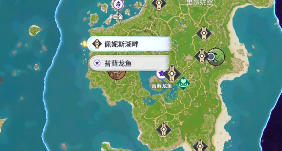 第一只登场的苔藓龙鱼名字就暗示了它的生活习性,一般生活在植被茂密、水汽充足的地区。玩家想要抓住它,就要把目光转向佩妮斯湖畔。这片区域风景优美,但是里面也可能潜藏着危险的魔物。
