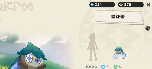 兽花蕾无论是颜值还是有实用性都是比较出色的,浑身都会鼓着粉嫩的花瓣。身后还有像翅膀一样的苞片,防风防水的同时,也可以让它轻盈的漂浮,可以随风而动。呆萌的小豆丁模样也吸引了不少的玩家。作为草光双属性的精灵,它的基础属性特点是比较鲜明的,生命值还有速度的表现也比较亮眼。初始的速度是120生命是100让他成为了比较灵活的强袭型角色。美中不足的就是物理性攻击,还有魔法攻击初始只有20需要靠技能搭配才能弥补输出的短板。