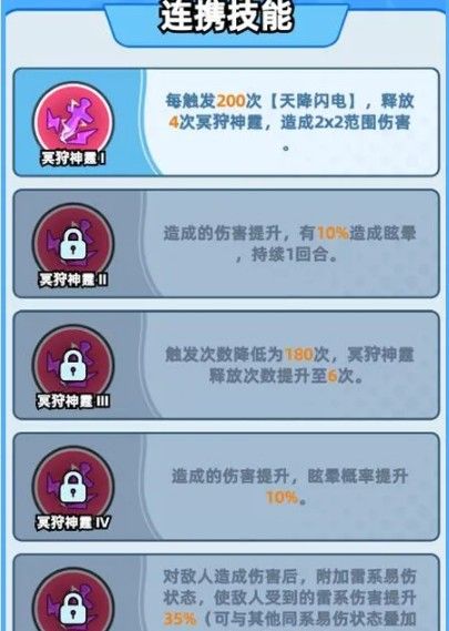 高频范围控场:每触发200次【天降闪电】(3级后180次),释放1次2x2范围伤害,2级起附带10%-20%眩晕概率,让雷队从纯输出进化为控场大师。