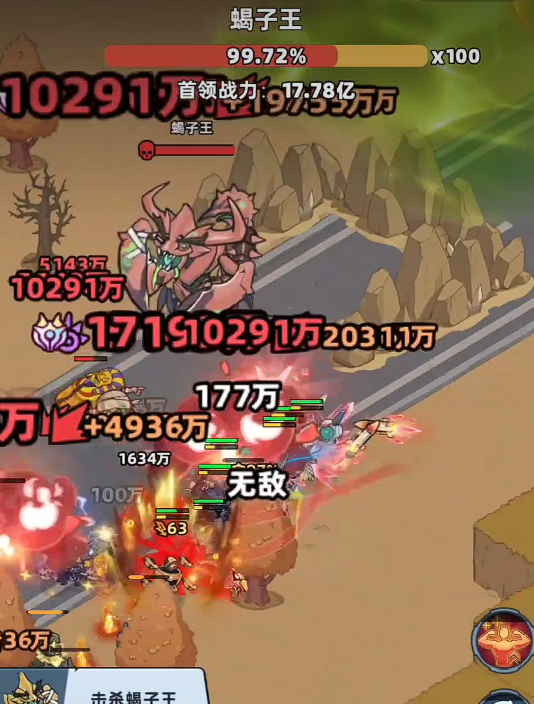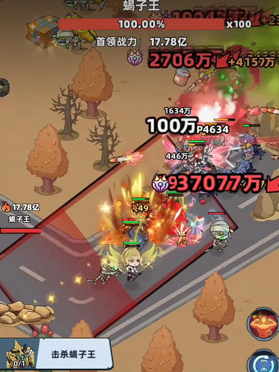 黑暗蝎子王在初期的攻击是比较缓慢的,在攻打的时候会出现红色攻击范围,这个范围内的敌人会被直接秒杀,不过该技能是比较好躲的,因为有明显的时间提示,只要玩家们看到提示立即撤离就能安全无伤,后续蝎子王就会停留在原地,这时候就是最好的输出时间。