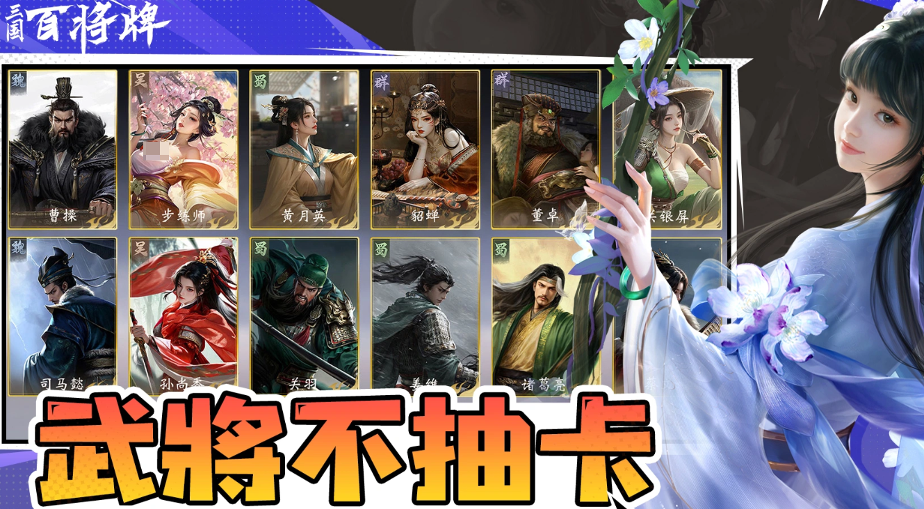 三国百将牌主打公平竞技,所以武将属性平衡。没有卡牌强度,只靠玩家出牌策略配合武将力能成为制胜关键。游戏的核心乐趣在于多了武将,每位武将都有根据自己形象的独特技能,可在对局中改变手牌、获取信息或者干扰对手等,让玩家可以实现绝地翻盘。游戏对局玩家可轻松上手,游戏规则就是斗地主玩法,大家可以用零散的时间来上一把。