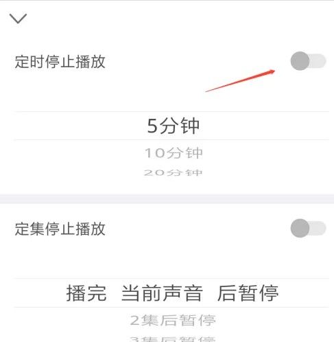 在弹出的菜单中,点击定时停止播放后面的开关。