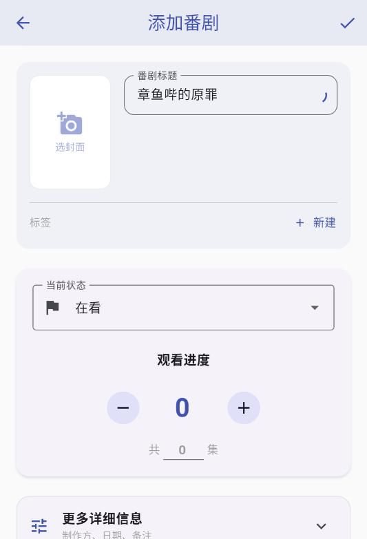 1、在这里可以添加你正在看的番剧,比如标题,封面,观看进度都是可以选择的。