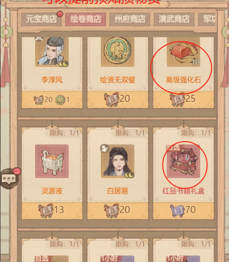 绘卷商店(解锁:拥有1个12星及以上僚属)