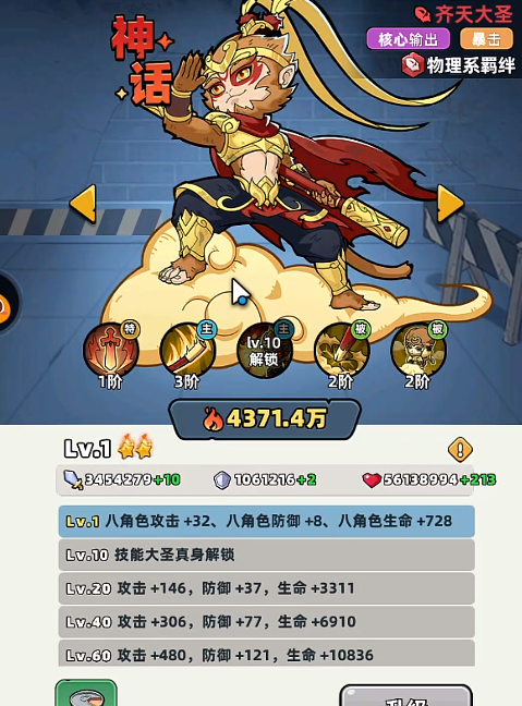 随着暗黑骑士在游戏里的等级变得更高,角色整体的攻击,防御和生命数值也会不断增加,玩家可以在游戏里多去选择一些特定的装备培养角色,让黑骑士在游戏里能有更优秀的表现,作为一个输出类型的角色,挑战过程中角色组队非常自由,关于角色的队伍搭配不会有过多限制,想让输出能力更优秀的玩家可以选择齐天大圣,作为游戏里的核心输出角色,能利用物理系羁绊给对方带来暴击伤害,两个成员的等级一样,通过互相配合,可以让队伍战力更强。