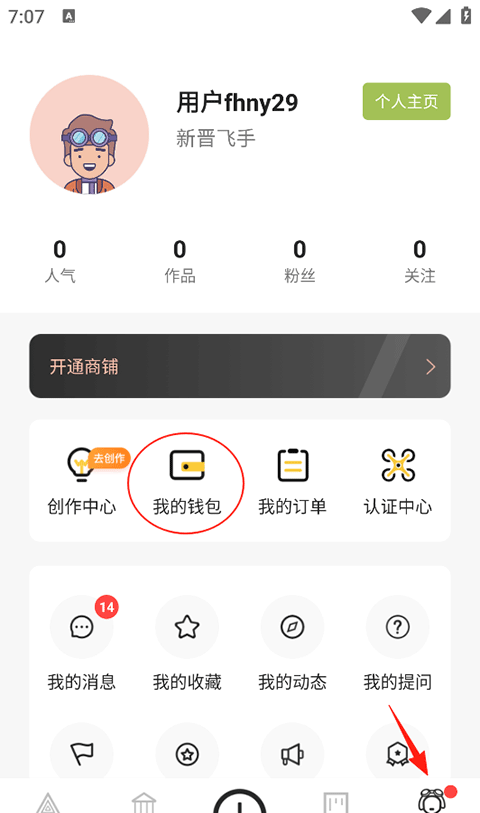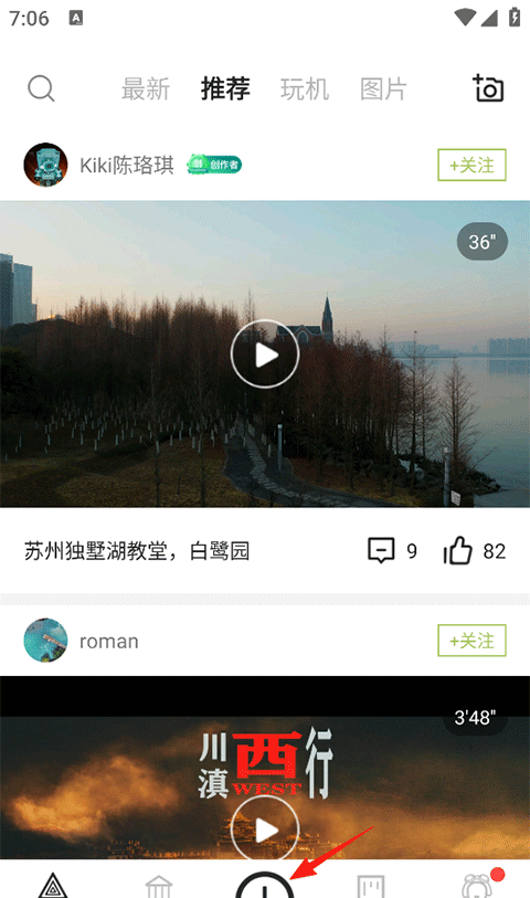 1、打开航拍网APP,点击屏幕正下方的添加图标;