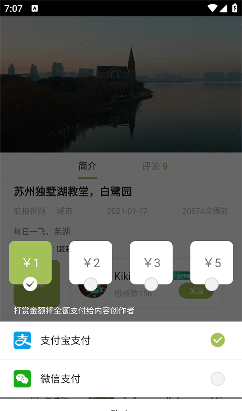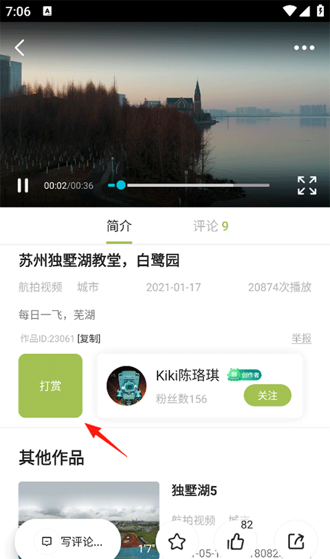 4、发布成功后系统将会根据作品质量推荐给用户,用户点击进入观看后可以点击打赏;
