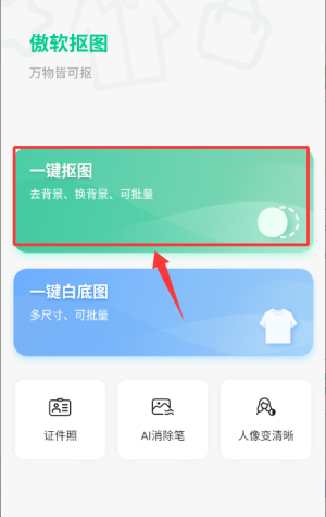 3、点击主界面"一键抠图"功能,实现智能去背景等编辑操作。