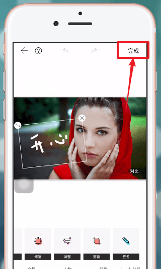 选中该文字或图案即可调整大小和位置,调整完成后,点击【完成】,选择【保存】,图片就保存成功了。