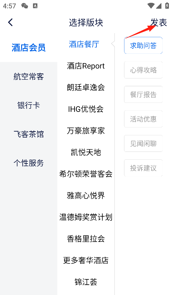 4、选择发布板块后,点击有右上方的“发表”。
