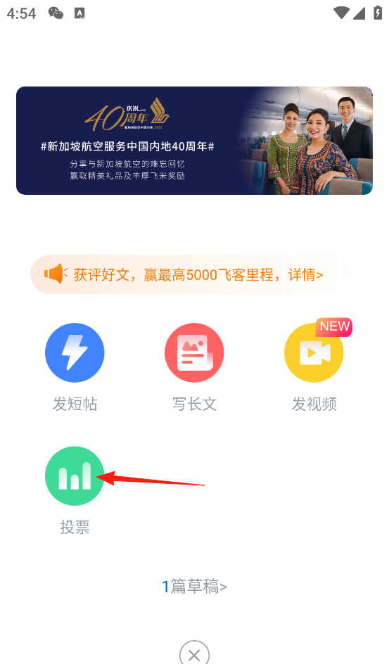 飞客茶馆app发布投票步骤: