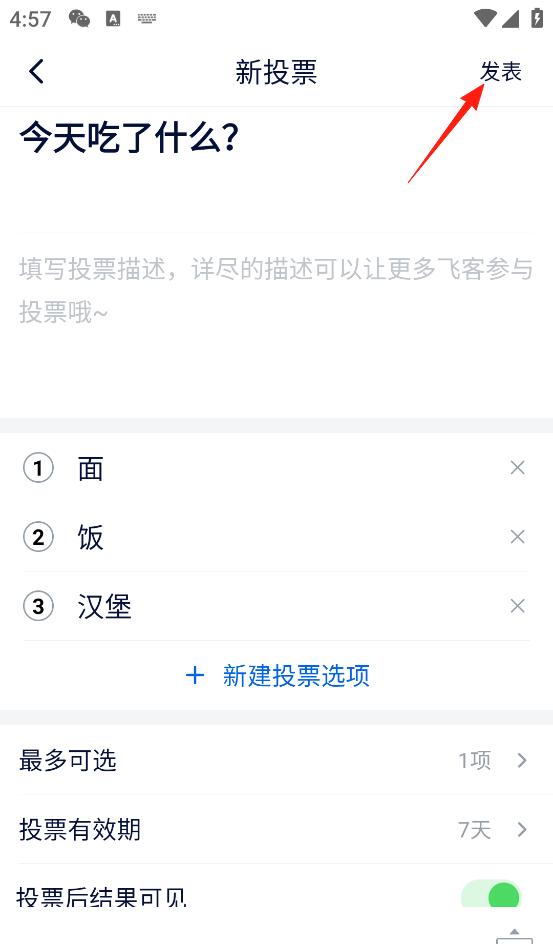 飞客茶馆app发布投票步骤
