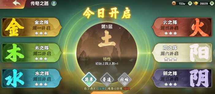 传奇之路每周开放的时间为周一至周四,以及周六周日。每次开放都有着不同的主题,分别为金木水火和阴阳这6种,而具体的每天对应哪一个属性,小编的文章里面已经直接给大家放出来了,各位同学可以参考。根据对应属性的不同,每天的玩法都会有特殊的机制,小伙伴们需要根据当天的特点来选择合理的配置应对。每一天的挑战都是阶梯难度的,也就是说如果你当天解锁了某个属性的第1层,那么在下一周的同一天,你就需要挑战该属性的第2层难度逐渐递增,当然了所获得的奖励也会更加丰富。