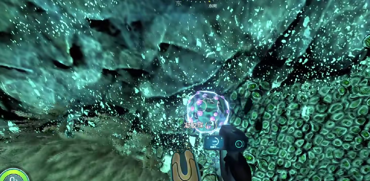 想要升级特大号的氧气瓶的时候,玩家还需要在19号逃生舱周边的水域搜索。就能够发现凝胶球,这个其实也是在游戏初期的时候比较容易获取的一种资源,玩家其实不知道凝胶球可以循环种植,通常情况下只需要使用一把小刀轻轻地划开凝胶球本体,就能够获得种子,然后将这个种子带回基地进行种植,以后玩家就不需要再出来寻找凝胶球,毕竟这时候玩家已经实现了自给自足。