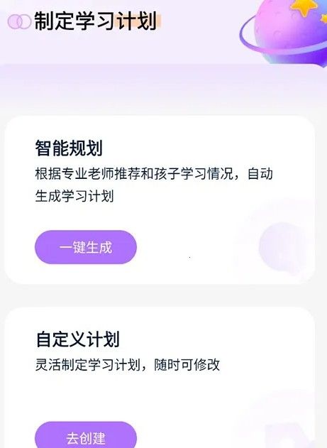 豆伴匠app怎么使用,用户在购课后可以进行学习计划的制定,在学习页面点击新建,然后用户就可以选择智能定制或者自定义啦,选择好之后就可以填写孩子的教育信息,如果选择的是智能定制,按照课程直接就能生成,如果选择自定义用户需要选择好日期以及学习日,添加好课程点击生成即可。