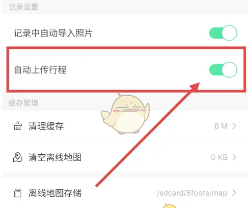 打开App后点击右下角的“我的”进入个人主页,点击右上角的“设置”图标,在设置页面中找到“自动上传行程”选项,点击开启右侧开关即可。开启后,当你完成一次行程记录(点击“结束”并保存路线名称),系统会自动将行程轨迹上传至云端,无需手动操作。
