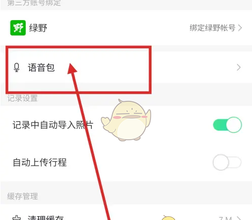 打开六只脚App后点击右下角的“我的”进入个人主页,再点击右上角的“设置”图标,在设置页面中找到并点击“语音包”选项,进入后即可选择“播报内容”并打开相应内容的开关,就能在记录户外行程的过程中收到对应的语音提示了。