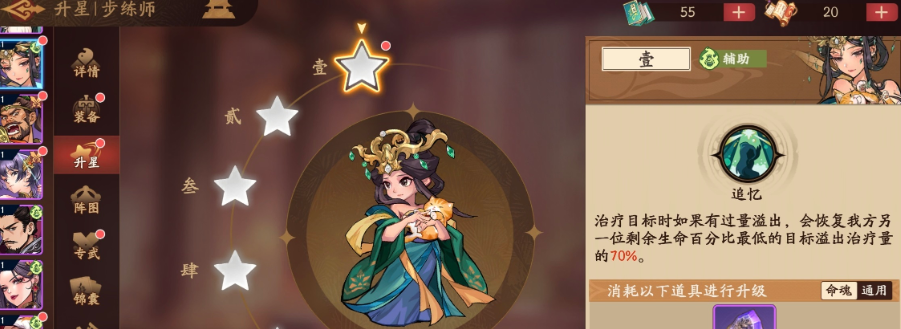 步练师的战术定位明确:专职辅助。她的治疗机制具备显著差异化优势——当为目标施放治疗时,若目标当前生命值未满,溢出部分不会被浪费,而是自动转移至我方生命百分比最低的另一名友方单位。该机制极大提升了治疗资源的利用效率,尤其适配残血多、战损高的中后期对局。此外,其天赋【追忆】进一步强化辅助效能:当被治疗目标生命比例低于40%时,本次治疗量提升20%;同时,溢出治疗转嫁至其他队友时,仍保留原治疗量70%的恢复效果,确保每一点治疗数值都切实生效。