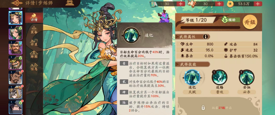 三国杀武将觉醒步练师强度怎么样?步练师是《三国杀·武将觉醒》中一位稀有度为紫色的辅助型武将,虽未达无双品质,但实战表现常可媲美部分无双级角色。其核心价值不在于爆发输出,而在于稳定、高效且具备联动性的团队治疗与增益能力。在前期尚未获取高阶武将时,合理培养步练师,能有效支撑阵容过渡,成为队伍中不可或缺的续航支点。