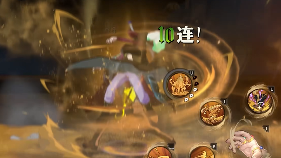 基础普攻共五段:首段为下劈斩击;第二段转身钩击,长按可延伸位移距离;第三段拍地引发连锁沙暴;第四段腾空回旋劈钩,具备背后判定;第五段“月形沙丘”命中后可获得1点能量,但会锁住沙化移动取消权。能量上限为5点,消耗后技能效果升级。当能量点累积至3点及以上,角色自动进入强化形态,周身浮现流动沙粒特效,攻防表现发生质变。