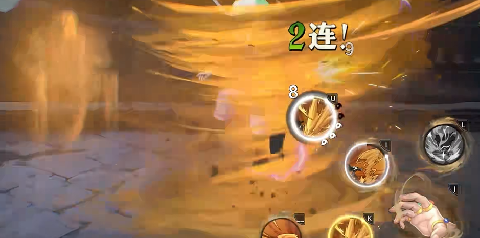 二技能点按释放短时龙卷风,长按可延长持续时间与伤害总量。强化形态下该技能位移距离增加,作用半径同步扩大。