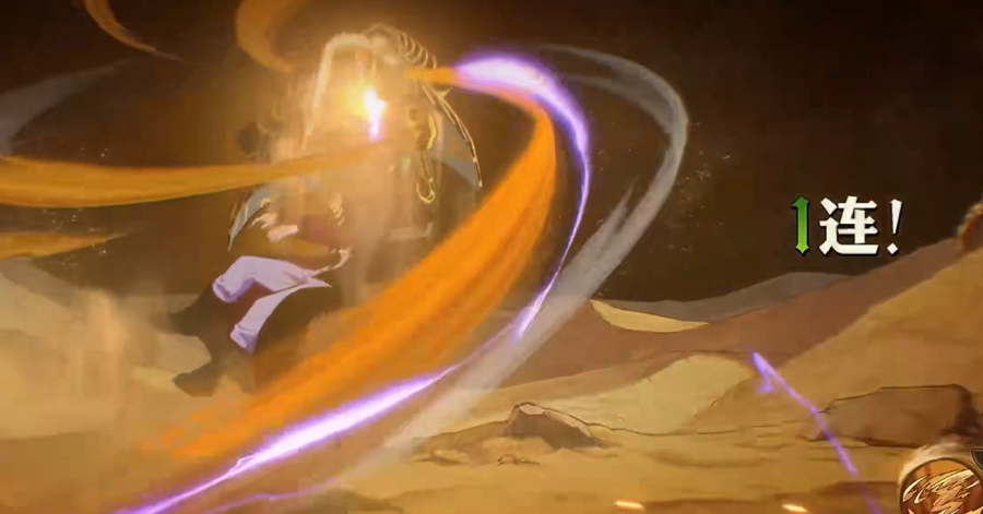 奥义技能包含多阶段变化:起手飞升蓄力,重击地面引发大范围沙暴并转化战场为沙漠地形;随元素能量累计达5次,可召唤援护沙暴进行动态范围打击;长按奥义可将敌人卷入空中,再释放定向沙暴;终结阶段为高速贴身突进,在接触瞬间完成空间位移并施放穿心打击。