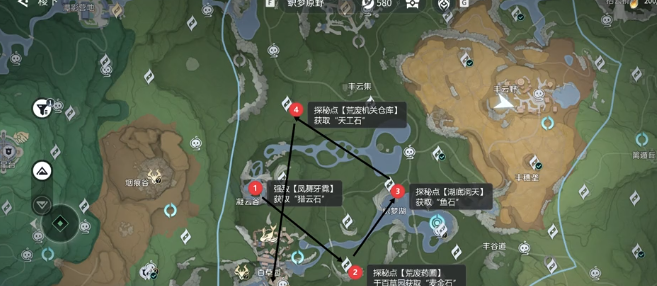 继续朝着东边前进,潜入到水下就可以进行垂钓,目标就是获取仿月燕鱼。没有饵料的话,打开地图可以来到垂钓家商店去购买。当然,如果玩家是肴馔家身份还可以选择自己去制作。最后前往四处指定的探秘点去完成酿酒,这里建议大家先激活黄色的机关,然后站在踏板上去射击两侧的机关。显示酿造成功之后就可以在桌子上去拾取酿酒的道具,然后前往探秘点去完成交付。在完成祈福之后,然后进入到收集的环节,这就是任务核心的步骤。