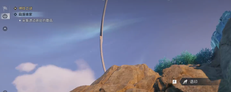 原来蘑菇在更高的悬崖边上,被眼前的树丛遮掩的严严实实,不仔细查看的话,根本就没有办法发现。最终我站在悬崖边上,看着手里的蘑菇,然后回头看着摔了七八次的山路,突然就会觉得有一些好笑,无奈。这哪里是采集任务,分明就是给的心态试炼图,不过也正是这种藏在大世界里面的小挑战,才会让游戏的探索感变得更加的真实。并非是一路跟着指引去跑,你还需要去琢磨,才能够发现遗迹里面的这些秘密。