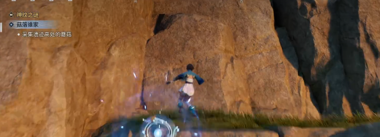 玩家跟随着主线走到了这个任务之后,就可以看到这边任务会提示采集遗迹高处的蘑菇。盯着屏幕看了半天,甚至以为是游戏出了bug。这边的悬崖又陡峭又滑,抬头望上去,目标就在悬崖的顶端,连一个可以落脚的地方都没有,该如何上去呢?开始只能够尝试着硬着头皮上去,但是根本就没有作用,后来才知道这中间肯定会有一些技巧。