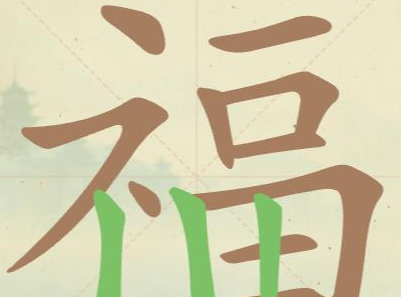 2、左侧“礻”可视为“示”的变形,其中隐含“川”;最后左右合体回归本体“福”。