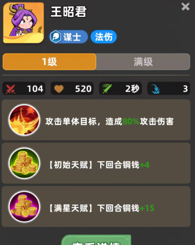 另外还有沈括这个角色在这里也是比较重要的,他的功能效果大家也一定要提前升级起来,然后上满5个谋士,触发其他效果之后,大家在其他的位置上面还可以给他们搭配一个王昭君,这样大家在经济获取当中能够拿到更多的银币,但是她在这里主要是作为一个经济增长的作用来进行搭配,所以不用过多的投入资源,星级提升在这里也没有太大的要求,除了5谋士之外,其实其他的空白卡位上面,大家还可以根据对手的上阵英雄来进行调整,比如说对手如果其他位置上面上的是谋士比较多,建议大家可以搭配的就是有法力抗性效果的英雄,这里比较推荐的是刘备,他自身的抗性数值还是比较高的。