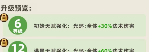 如果是把张梁作为阵容核心的话,那么他的强度是不够的,后期在强化他各种光环能力的时候,其实他最多也是只能提升到12级的,在基础6级的时候,大家可以看到他初始天赋当中的强化效果体现在光环当中,是给全体的成员带来30%的法术伤害加成,而另外在等级12级的时候,此时满星的天赋也会得到强化,带来的光环能力是给全体都增加60%的法术伤害,这也是他目前可以提升到最高的一个增益效果百分比,所以他目前在上限数值当中也是没有那么高的百分比可以提升,最多也就提升到60%,对于我方需要的输出效果来说,如果是纯输出的话,谋士队还可以用他增益,当然如果大家想要一些控制能力或者是其他类型的能力,这里张梁能够带来的辅助功能并不强。
