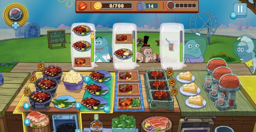 烹制并端上各种美味餐点,包括蟹堡馅饼、煎饼、烧烤等!化身SpongeBob SquarePants操作烧烤架,为比基尼海滩的居民提供最迅捷的餐饮服务。客人中有各种熟悉的面孔,例如Patrick Star、Sandy Cheeks、Squidward等等!为客人提供满意的服务,就能赢得小费、点赞还有奖金!从新手煎炸大厨做起,勤奋训练,成为比基尼海滩的高端快餐厨师!