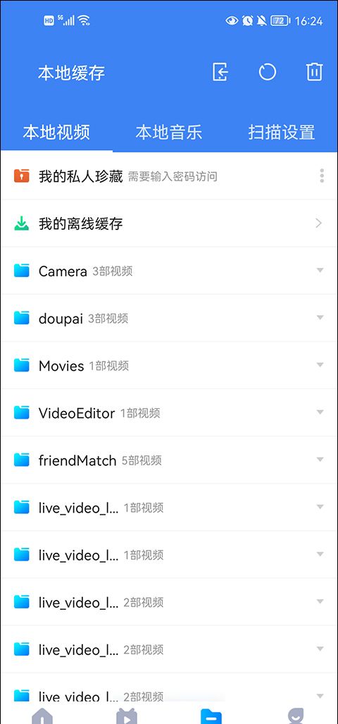 不管是本地视频还是本地音乐,都可以通过这里扫描出来,并且还提供了私人珍藏功能,懂得都懂。