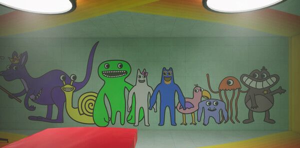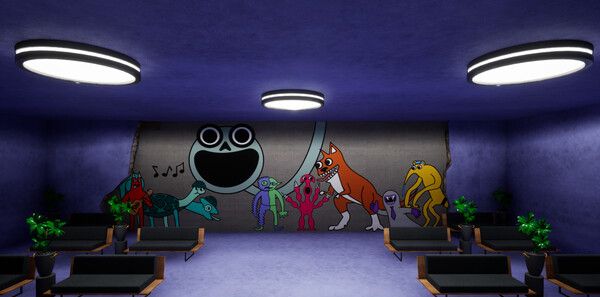 游戏采用虚幻引擎5打造,场景细节丰富:斑驳的墙漆、散落的玩具、血迹与抓痕等均以高精度建模呈现。角色与怪物设计兼具卡通风格与恐怖元素,例如蓝色班班的机械肢体与荧光纹理形成视觉反差。动态光照系统强化了恐怖氛围——手电筒光束下的灰尘粒子、怪物瞳孔的反射光等细节提升了沉浸感。此外,过场动画采用电影级运镜,配合环境音效与剧情配音,进一步深化叙事张力。