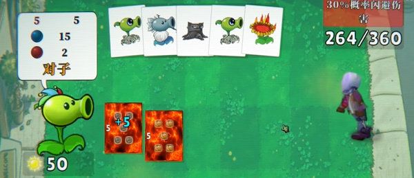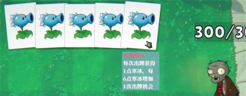 3、如火炬木能让出牌有火焰效果,雪花豌豆出牌得寒冰,六点寒冰增一次出牌机会。
