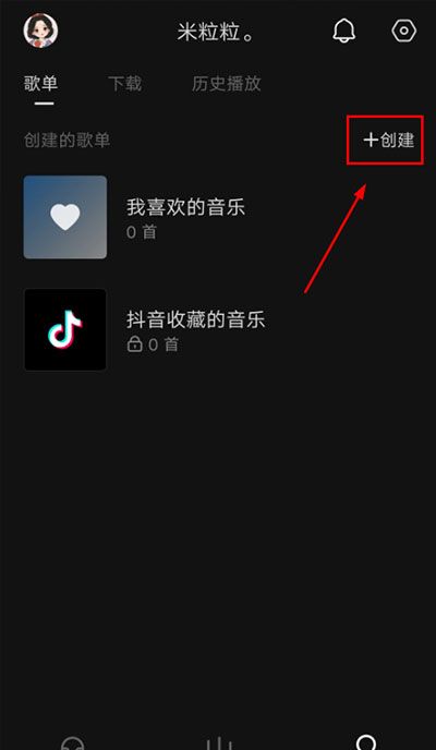 2、在【我的】页面,点击“歌单”--“+创建”。